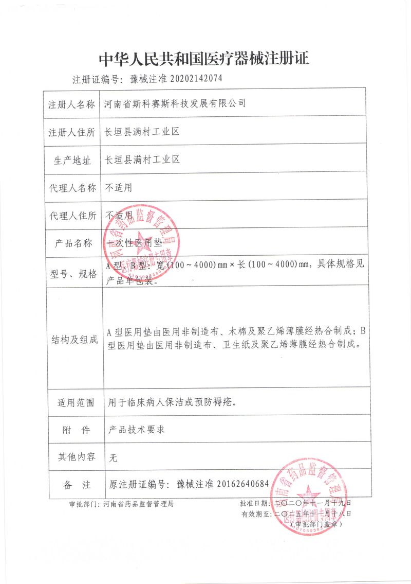 河南省斯科賽斯科技發(fā)展有限公司創(chuàng)建于 2011 年,位于“中國醫(yī)療耗材之都”- 河南省長垣縣,西臨 308 省道,南靠新菏鐵路,北依長濟(jì)高速,交通便捷,經(jīng)濟(jì)發(fā)達(dá),環(huán)境優(yōu)美。斯科賽斯積極進(jìn)入醫(yī)療健康和服務(wù)領(lǐng)域,秉承為用戶創(chuàng)造價值的理念,專注于醫(yī)用耗材解決方案的研發(fā)和運(yùn)營,并為用戶提供完善的產(chǎn)品解決方案;  斯科賽斯主要生產(chǎn)醫(yī)用麻醉系列、醫(yī)用高分子系列、醫(yī)用敷料包系列、醫(yī)用無紡布系列、醫(yī)用防護(hù)系列、醫(yī)用脫脂棉系列、生物材料制品類等七大類、100 多個品種、400 多個規(guī)格的產(chǎn)品。公司占地面積約 30000 平方米,建筑面積20000 平方米,擁有 10 萬級的凈化車間總面積 10000 平方米。擁有國際先進(jìn)水平的生產(chǎn)設(shè)備和檢測儀器,技術(shù)裝備精良,檢測手段完善,為醫(yī)療行業(yè)的不斷發(fā)展進(jìn)步提供保障。公司順利通過 ISO9001、ISO13485 質(zhì)量管理體系認(rèn)證。  斯科賽斯堅持研發(fā)高科技新產(chǎn)品,力爭在醫(yī)療器械關(guān)鍵領(lǐng)域取得技術(shù)和研發(fā)的重大突破;立足國內(nèi)和國際兩個市場,逐步實現(xiàn)管理理念、經(jīng)營機(jī)制、人力資源、技術(shù)、產(chǎn)品、市場等全方位對接,提高企業(yè)的核心競爭力;過去的歲月里,斯科賽斯砥礪前行,誠信務(wù)實,銳意進(jìn)取,不斷創(chuàng)新,用自己的睿智和辛勞,以富有責(zé)任感的使命,在探索中追求,在追求中超越,致力于成為值得信賴的醫(yī)療用品生產(chǎn)企業(yè)!在未來的日子里,斯科賽斯將一如既往豪情滿懷,信心百倍,攜手并肩,執(zhí)著追求,向更高的的目標(biāo)前進(jìn),鑄造新的輝煌!